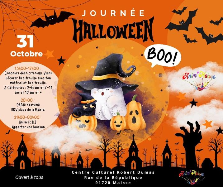 Journée Halloween festive à Maisse avec concours de citrouilles, défilé costumé et bal animé par un DJ.